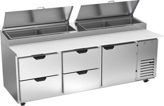 Beverage Air DPD93HC-4, 93" Deli/Pizza Prep Table with One Door & Four Drawers