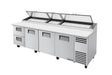 True TPP-AT-119D-2-HC, 119" 3 Door 2 Drawer Pizza Prep Table, includes (15) 1/3 size pans